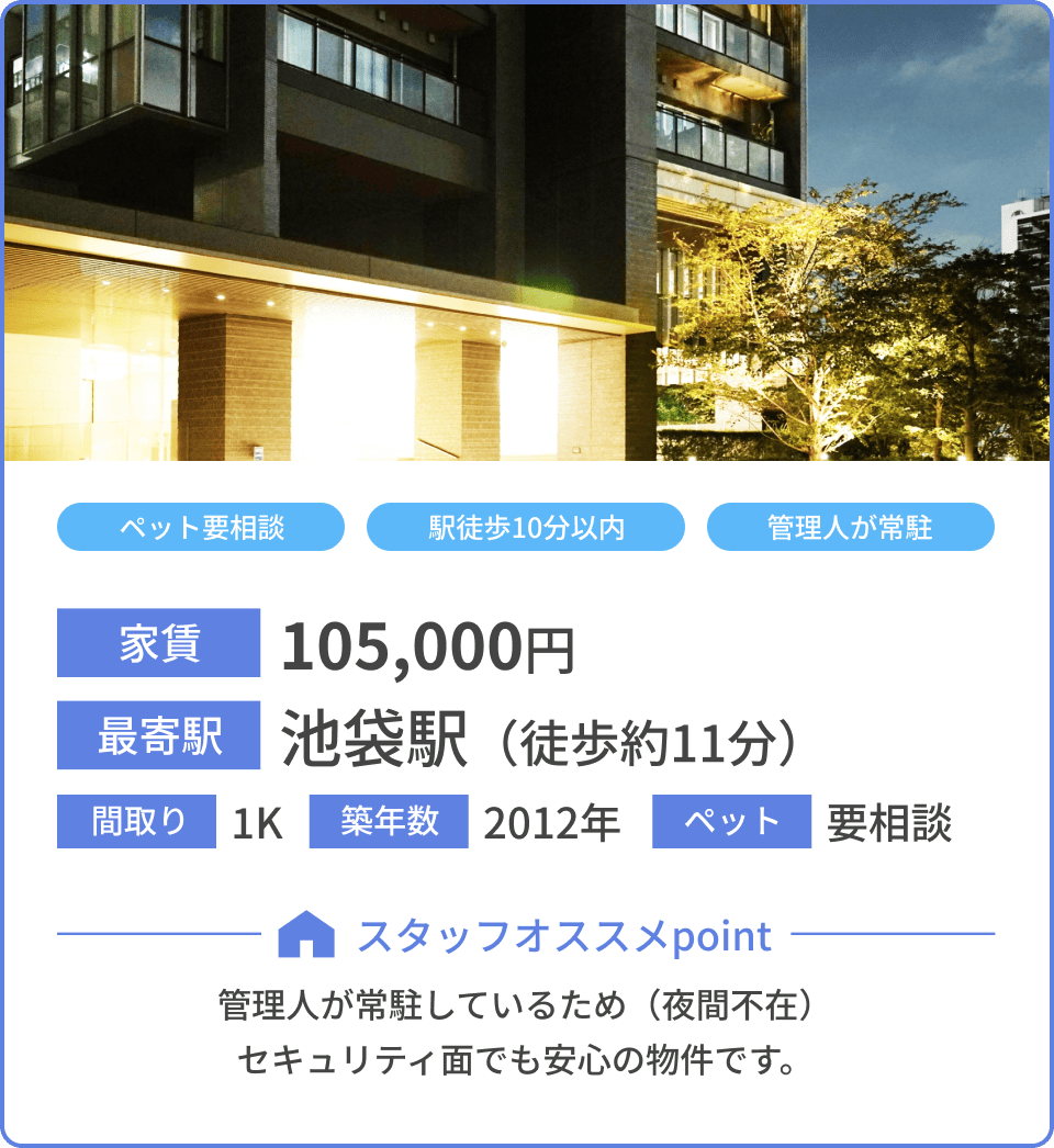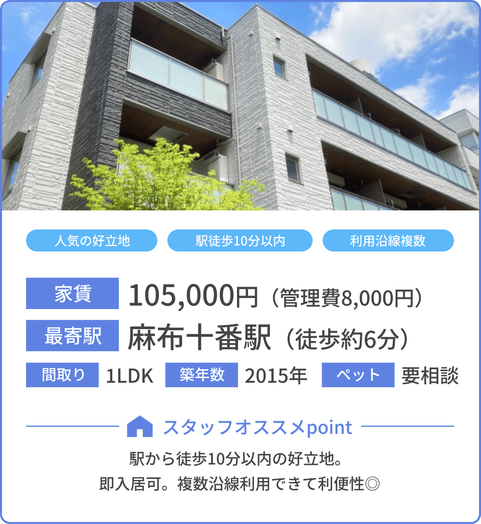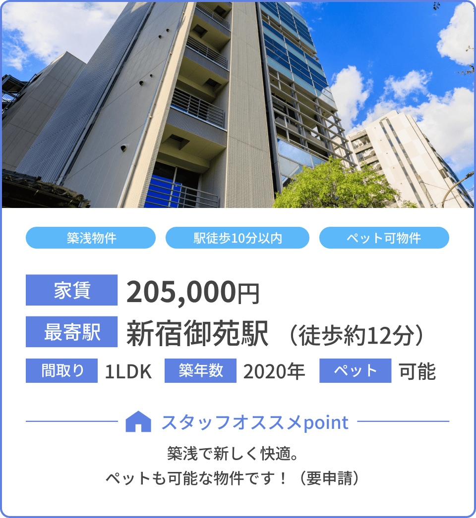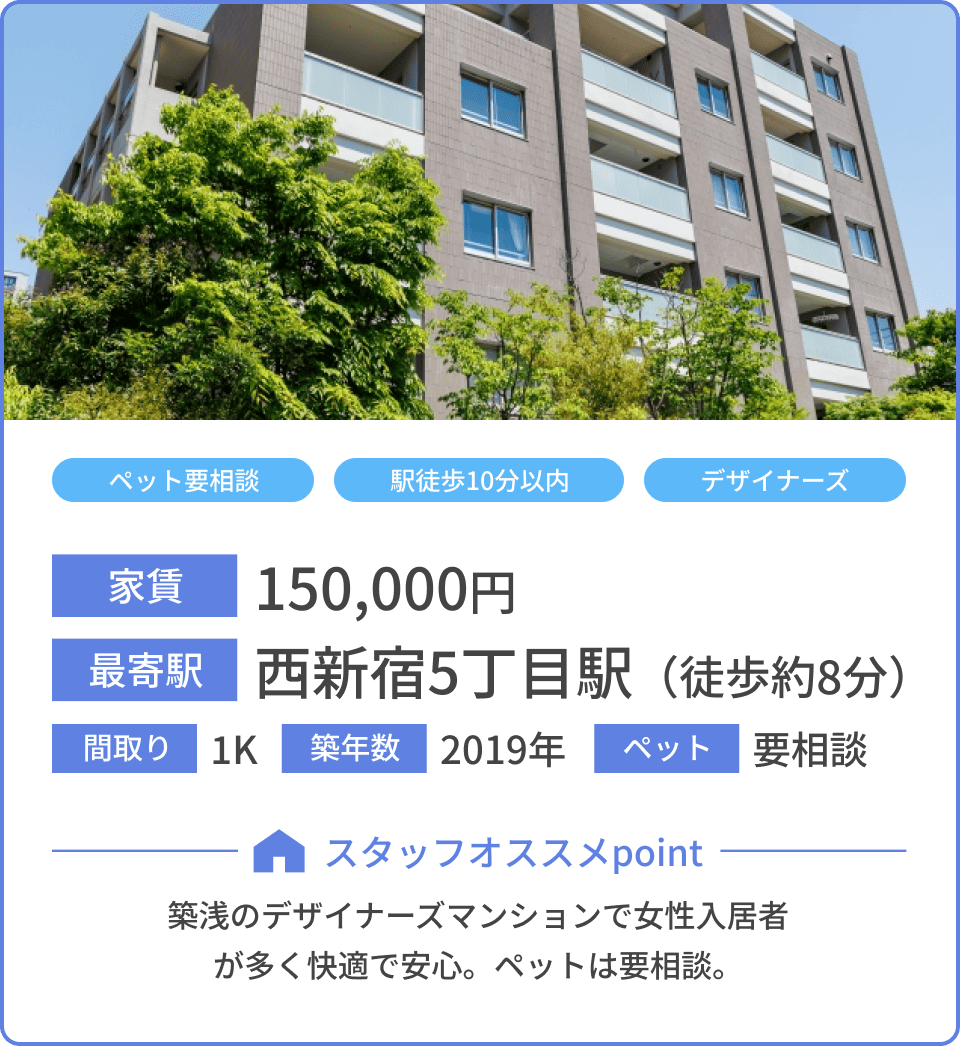 - ご安心ください。お客様のご事情や状況に合わせて、審査に支障のない物件をご紹介いたします。さらに、ご希望条件にできる限り近い物件を提案させていただきます。